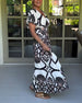 Stilvolles kleid mit patchwork-reißverschluss und tasche im leopardenmuster