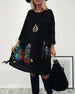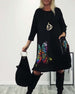 Langärmliges Kleid mit Schmetterlings-Print und Tasche