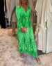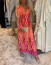 Elegantes bedrucktes Kleid mit V-Ausschnitt und Krawatte