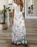 Langes Kleid mit Blumendruck und kurzen Ärmeln aus Spitze
