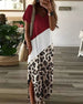 Stilvolles kleid mit patchwork-reißverschluss und tasche im leopardenmuster