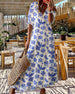 Lässiges Kleid mit V-Ausschnitt und Retro-Print