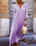 Lässiges Kleid mit V-Ausschnitt und Retro-Print