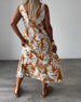 Elegantes bedrucktes Kleid mit V-Ausschnitt und Krawatte