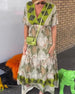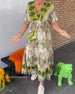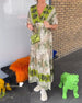 Kurzärmliges Schlitzkleid mit Blattmuster
