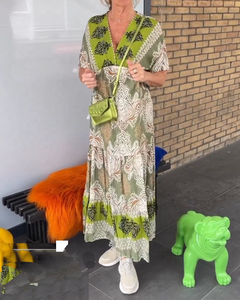 Lässiges, bedrucktes Kurzarmkleid mit V-Ausschnitt