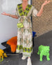 Lässiges kleid mit kariertem patchwork und tasche