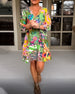 Elegantes bedrucktes Kleid mit V-Ausschnitt und Krawatte