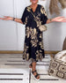 Lässiges Kleid mit kontrastierendem Blätter-Print