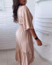 Einfarbiges, elegantes kleid mit rüschenärmeln und v-ausschnitt