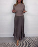 Freizeitkleid mit Rundhalsausschnitt, einfarbig und plissiert