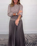 Elegantes, plissiertes Kleid in Volltonfarbe mit Rundhalsausschnitt