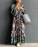 Elegantes bedrucktes Kleid mit V-Ausschnitt und Krawatte