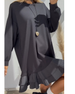 Lässiges kleid mit stehkragen und langen ärmeln und kordelzug