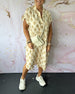 Kurzärmliges Schlitzkleid mit Blattmuster
