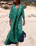 Kurzärmliges Schlitzkleid mit Blattmuster