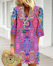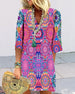 Lässiges Kleid mit V-Ausschnitt und Retro-Print