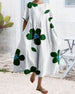 Kurzärmliges Schlitzkleid mit Blattmuster