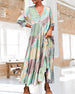Elegantes bedrucktes Kleid mit V-Ausschnitt und Krawatte