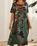 Kurzärmliges Schlitzkleid mit Blattmuster
