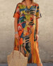 Lässiges Kleid mit V-Ausschnitt und Retro-Print
