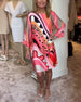 Bunt bedrucktes taschenkleid mit v-ausschnitt und halbarm