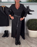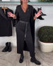 Elegantes V-Ausschnitt Langarm Lederkleid mit Schnürung