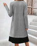 Modisches, einfarbiges, hüftumschließendes kleid mit langen ärmeln und rundhalsausschnitt