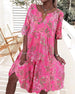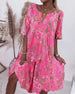 Bunt bedrucktes taschenkleid mit v-ausschnitt und halbarm