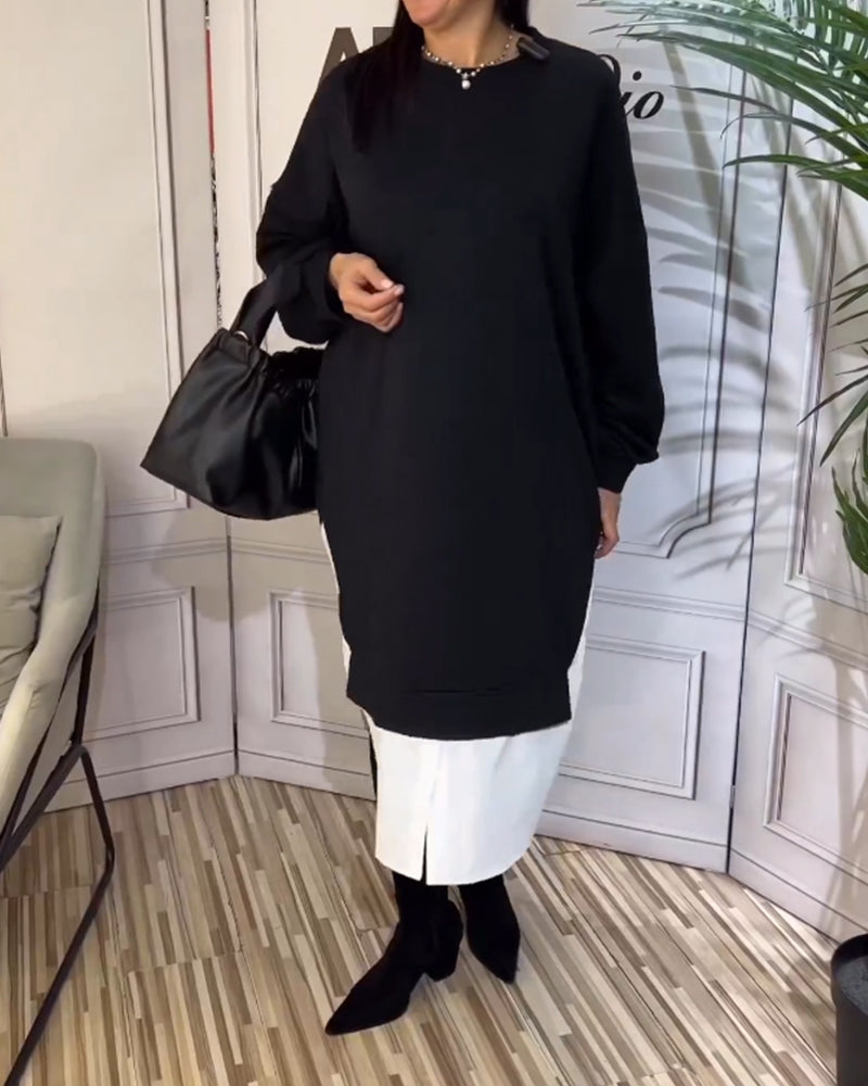 Kleid lässig Rundhals Schlitz Persönlichkeit Design