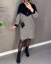 Kleid mit langen Ärmeln und Tasche im Farbblockdesign