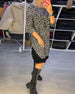 Modisches, langärmliges hüftkleid mit leopardenmuster