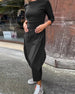 Modische hose in einfarbiger farbe mit unregelmäßigem patchwork und taschen