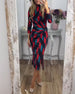 Elegantes bedrucktes Kleid mit V-Ausschnitt und Krawatte