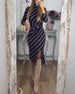 Sexy Kleid mit Streifen und Stehkragen
