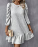 Modisches, einfarbiges, hüftumschließendes kleid mit langen ärmeln und rundhalsausschnitt