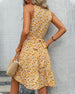 Elegantes bedrucktes Kleid mit V-Ausschnitt und Krawatte