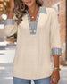 SPEZIFIKATIONEN Oberteil Typ: T-shirt Stil: Zwanglos Material: Baumwollmischungen Anlass: Täglich Ausschnitt: V-Ausschnitt Muster Typ: Einfarbig Ärmel Typ: Raglanärmel Ärmellänge: 3/4 Ärmel Passform Typ: Normal Jahreszeit: Frühling,Herbst,Winter Einzelheiten: Patchwork Paket enthält: 1 x T-shirt GRÖSSENTABELLE (cm) Größe Brsutmfang Länge S...