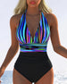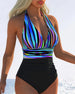 Badeanzug Zweiteilig Gestreift Farbblock Bikini