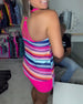 Bunt bedruckter Patchwork-Spitzen-Neckholder-Bikini