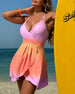 Badeanzug Zweiteilig Gestreift Farbblock Bikini