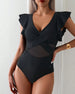 Badeanzug Volant Netz Einteiler