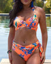 Neckholder-Bikinis mit floralem und geometrischem Druck