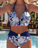 Neckholder-Bikinis mit floralem und geometrischem Druck
