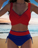 Badeanzug Zweiteilig Gestreift Farbblock Bikini