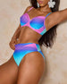 Bunt bedruckter Patchwork-Spitzen-Neckholder-Bikini