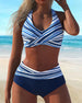 Badeanzug Hohe Taille Gestreift Dreieck Zweiteilig