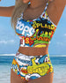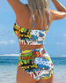 Bunt bedruckter Patchwork-Spitzen-Neckholder-Bikini