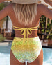 Bunt bedruckter Patchwork-Spitzen-Neckholder-Bikini