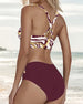 Badeanzug Hohe Taille Gestreift Dreieck Zweiteilig